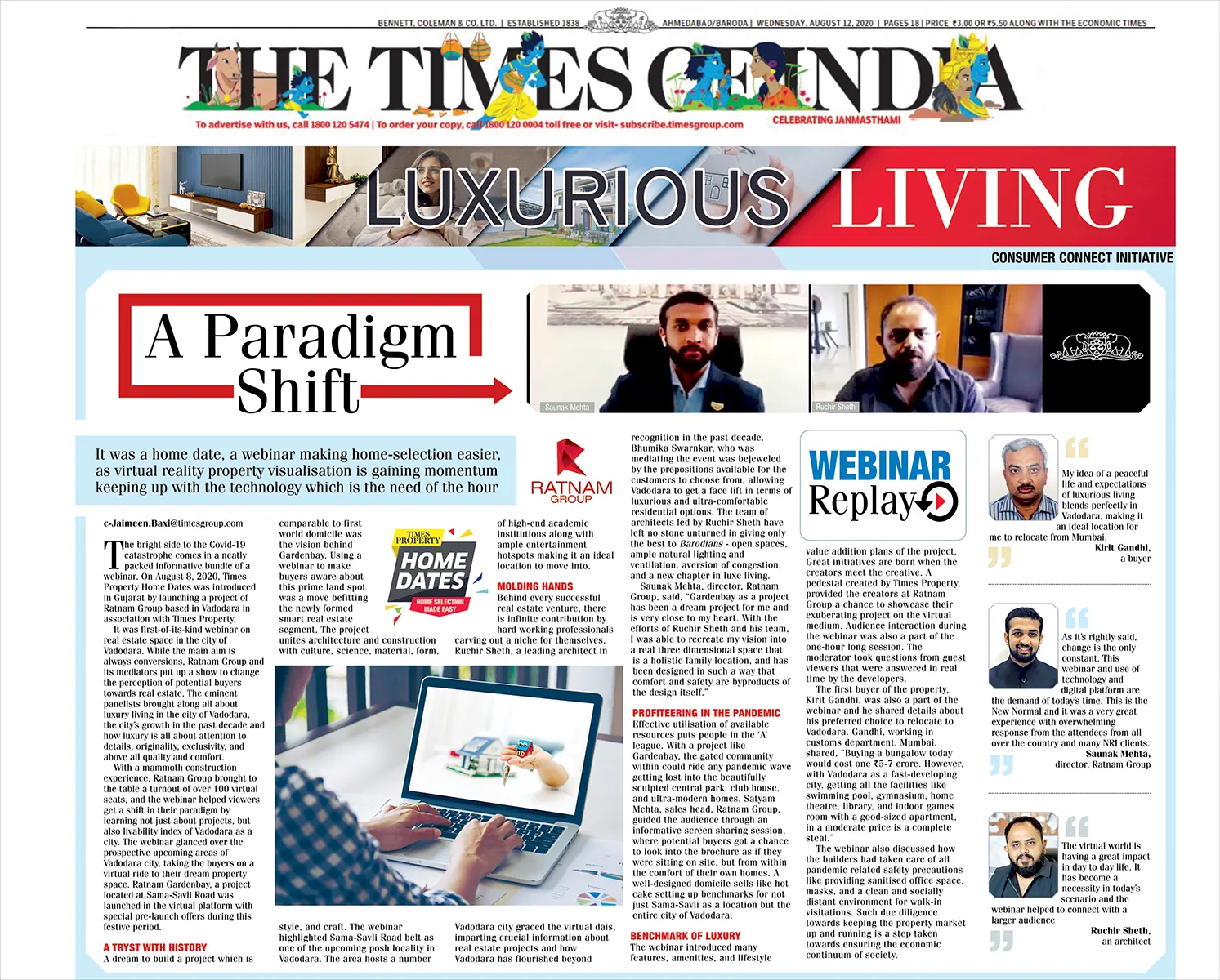 Times Real Estate Icons of Vadodara 2021 - Media Coverage