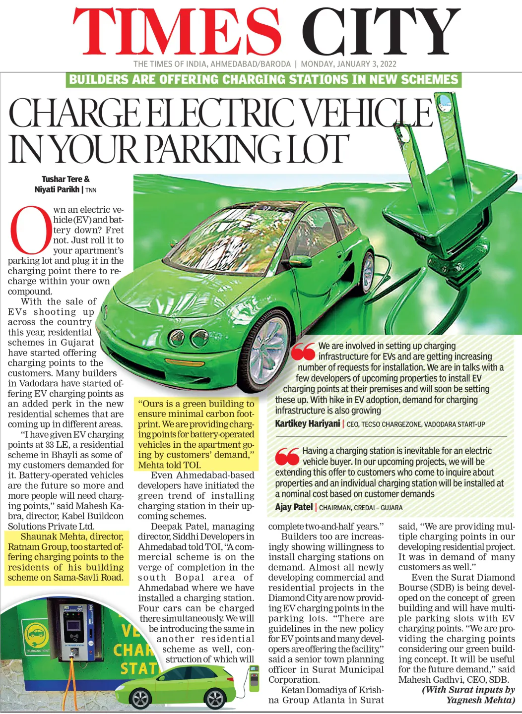 Times of India - Featured For EV Charging Provision